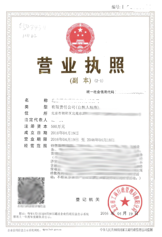 收购北京朝阳区营业执照